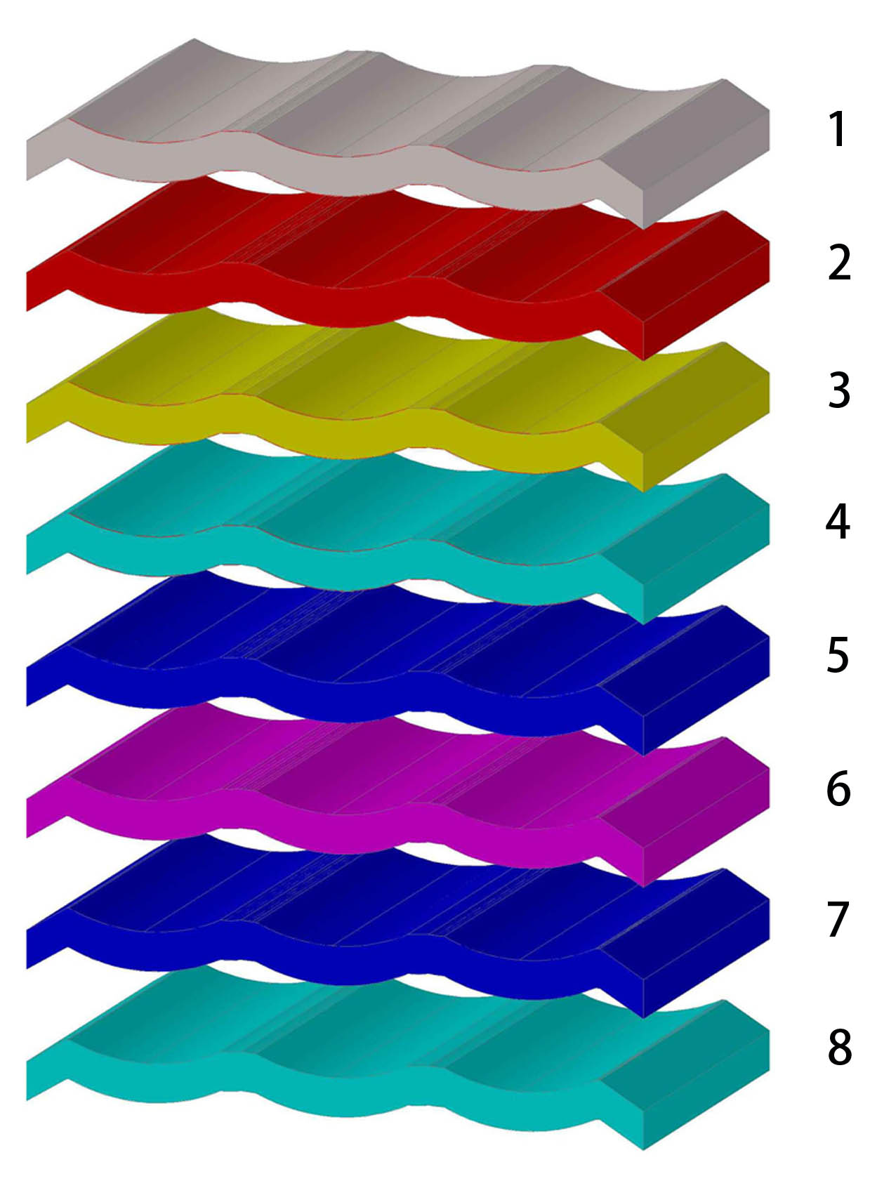 Stone coated steel roofing tile is a kind of innovative, composite, eco-friendly, high-tech product. Its base material is Aluminum-zinc (galvalume, aluzinc) steel sheet in high corrosion resistance. The surface treatment is natural stone gravels which are in natural color or colored with inorganic pigments adhering to the Aluminum-zinc steel sheet. The adhesive, a kind of high-quality water-based acrylic resin, is researched and invented by ourselves.